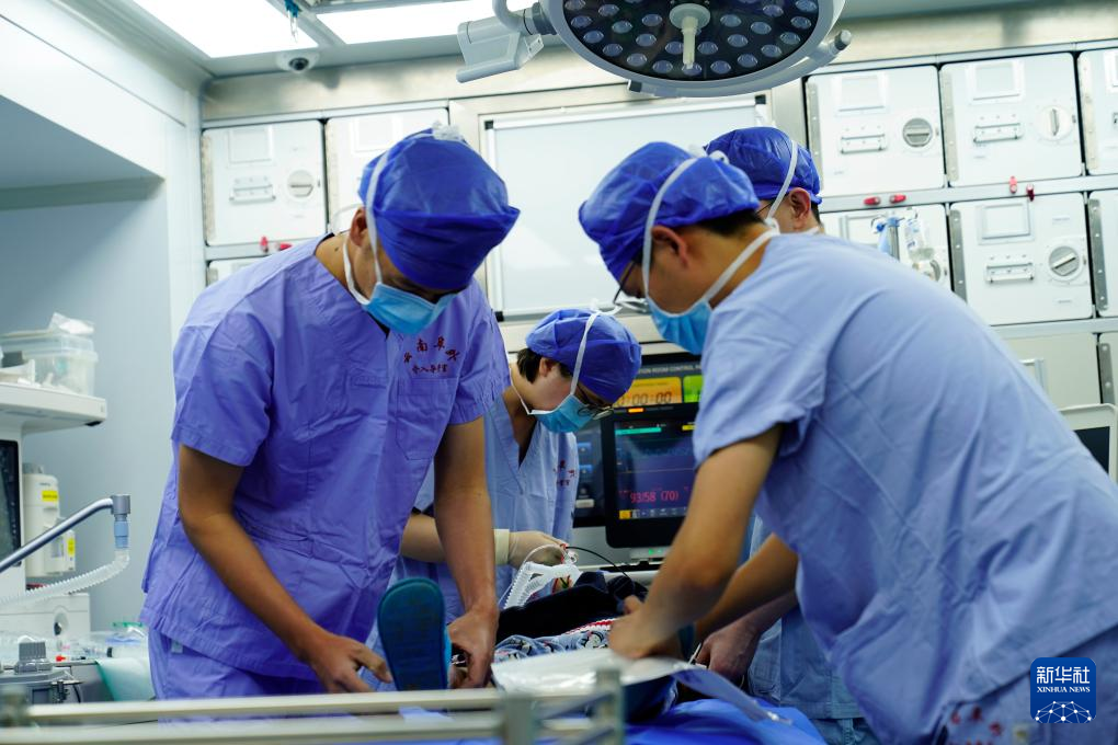 醫護人員在移動介入治療手術車上為(wei) 先心病患兒(er) 進行微創手術。新華社記者 劉洪明 攝