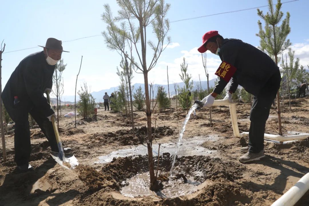 圖為(wei) 2023年3月,山南市幹部群眾(zhong) 植樹。山南市融媒體(ti) 中心供圖