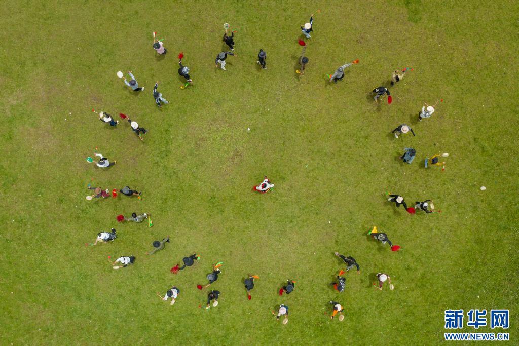 7月12日,西藏昌都市丁青縣尺犢鎮烏(wu) 巴村文藝演出隊在排練(無人機照片)。 新華網 旦增努布 攝