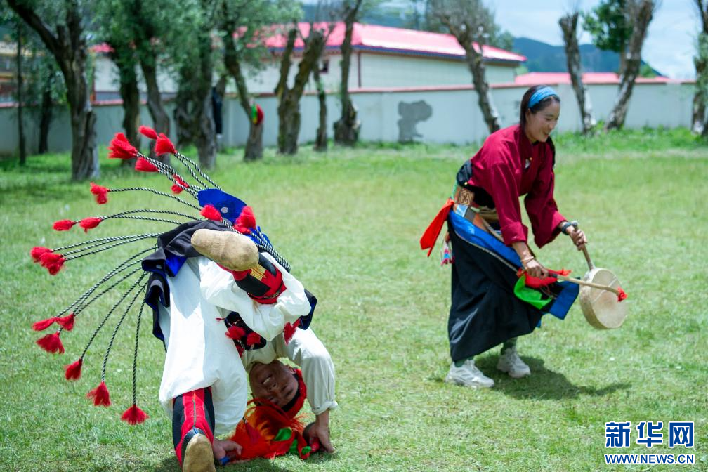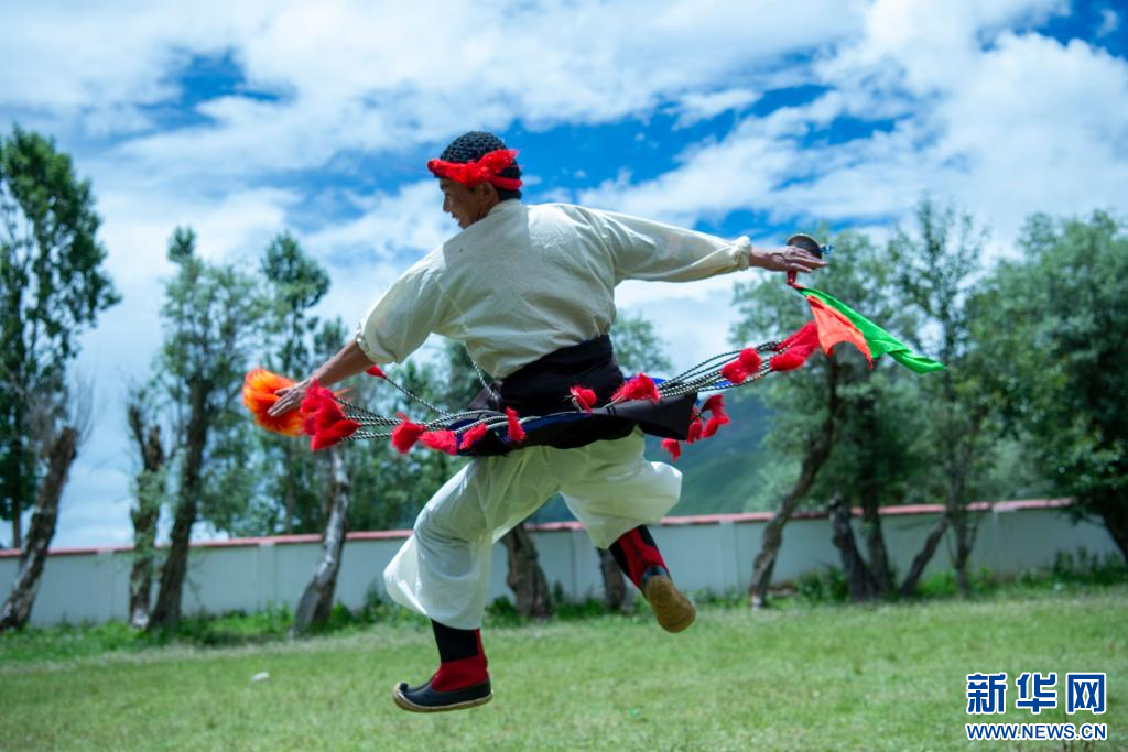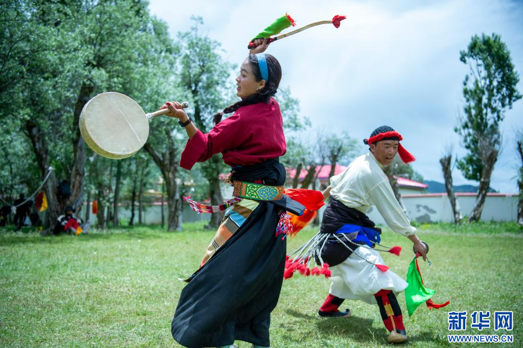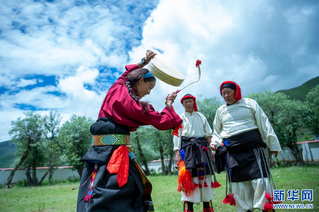 7月12日,西藏昌都市丁青縣尺犢鎮烏(wu) 巴村文藝演出隊隊員在排練。 新華網 旦增努布 攝