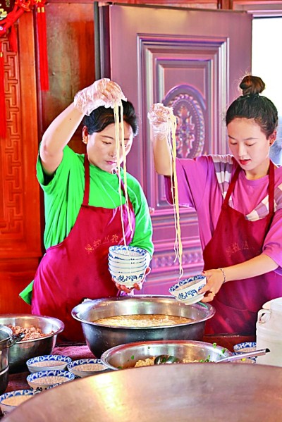 加加麵是芒康鹽井的一種美食,顧名思義(yi) 就是“不停地加”。圖為(wei) 當地百姓製作加加麵。光明日報記者 劉宇航攝