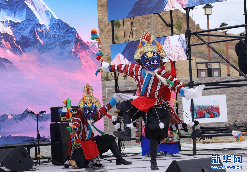 7月23日,在西藏定日2023珠峰音樂(le) 美食節現場,民間藝術團表演國家級非物質文化遺產(chan) 定日洛諧。新華網發 李騰 攝