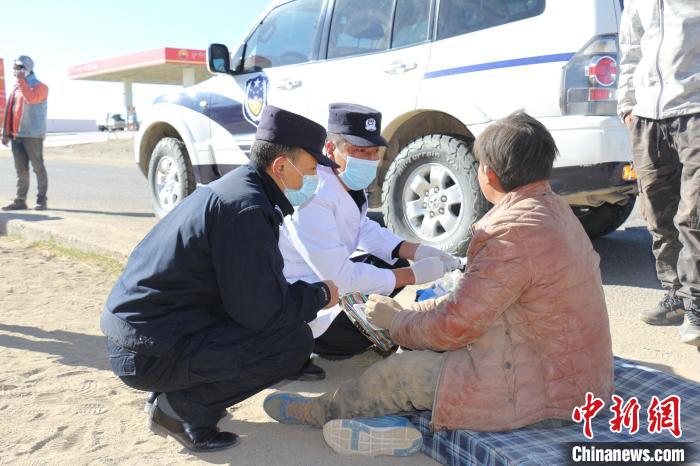 圖為(wei) 民警救治受傷(shang) 民眾(zhong) 。西藏出入境邊防檢查總站阿裏邊境管理支隊供圖