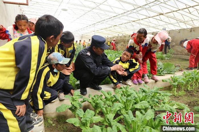 圖為(wei) 民警為(wei) 巴嘎鄉(xiang) 小學生科普溫室大棚種植技術。西藏出入境邊防檢查總站阿裏邊境管理支隊供圖