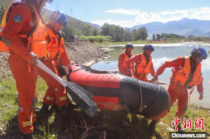 圖為(wei) 演練現場進行舟艇救援。西藏自治區森林消防總隊拉薩市大隊 供圖