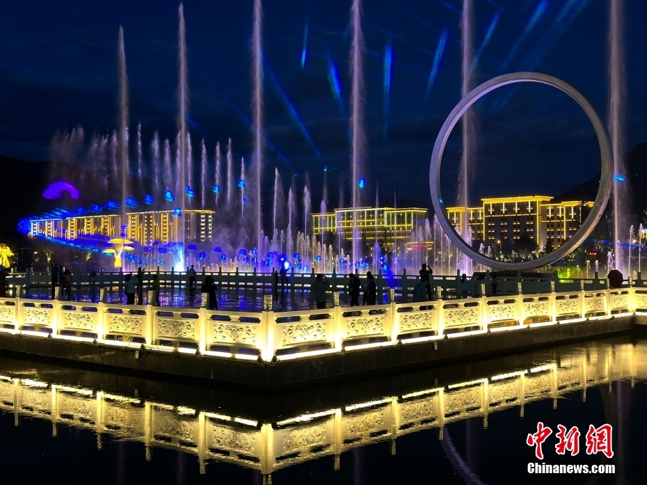 音樂(le) 水秀噴泉位於(yu) 工布公園人工生態湖中。錢姣姣 攝