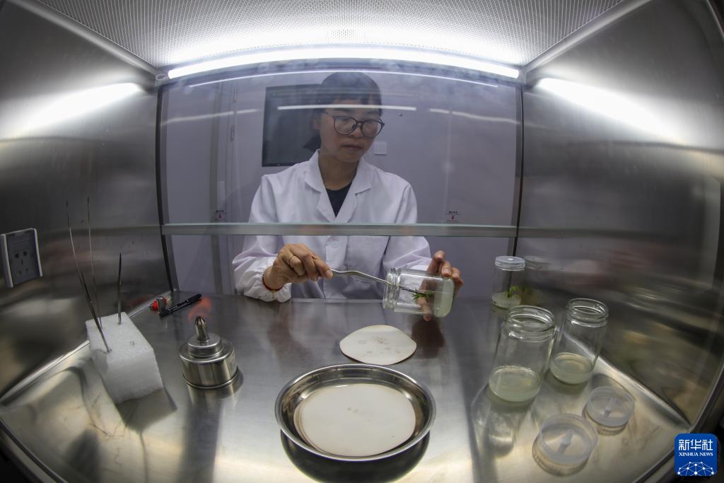 劉利平博士在高原核桃研究所用核桃組織培養(yang) 標本做實驗(7月27日攝)。新華社記者 薑帆 攝