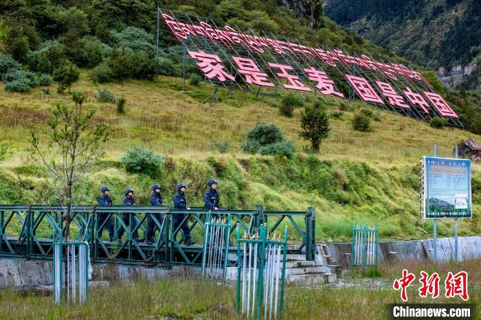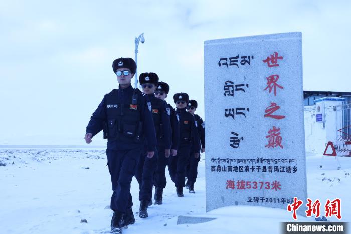 圖為(wei) 袁浩傑與(yu) 戰友在海拔5373米的普瑪江塘邊境派出所巡邏。山南邊境管理支隊供圖