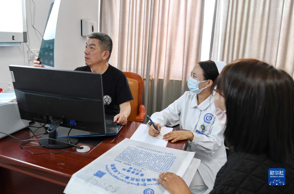 8月10日,北京天壇醫院神經外科學中心主任醫師隋大立(左)和西藏自治區第二人民醫院的醫生為(wei) 患者義(yi) 診。新華社記者 張汝鋒 攝