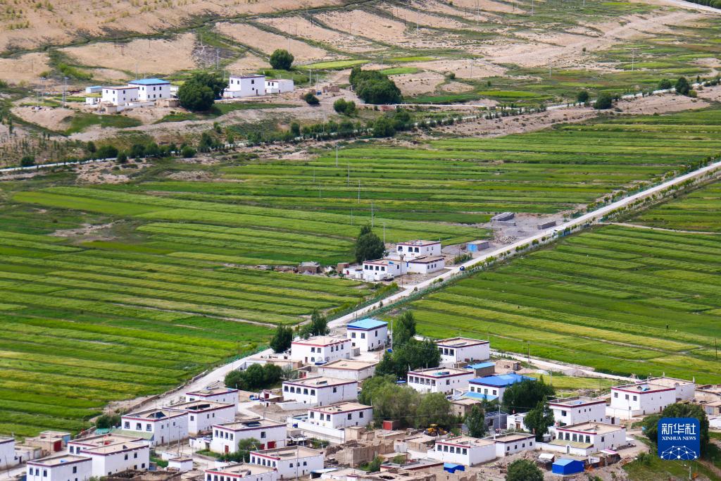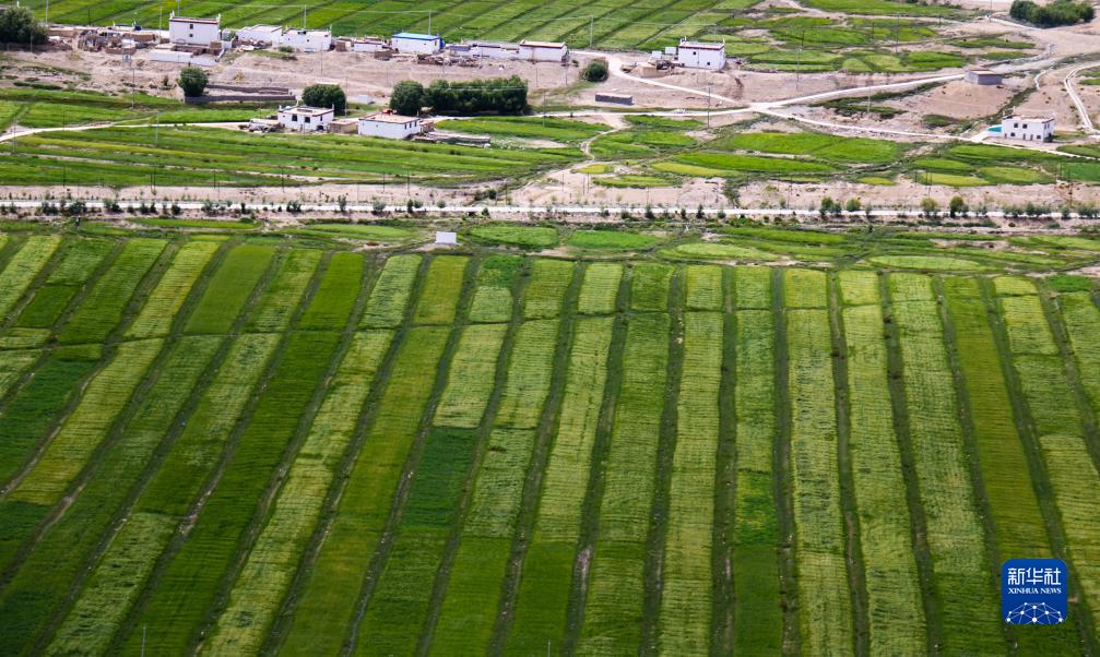 被青稞田點綴的西藏普蘭(lan) 縣村莊(8月12日攝)。新華社記者 曹檳 攝