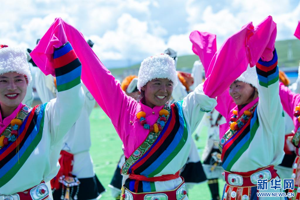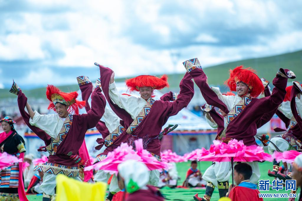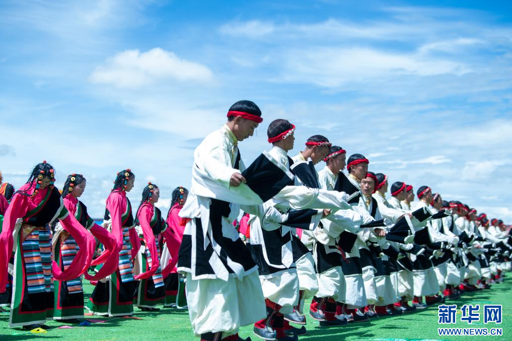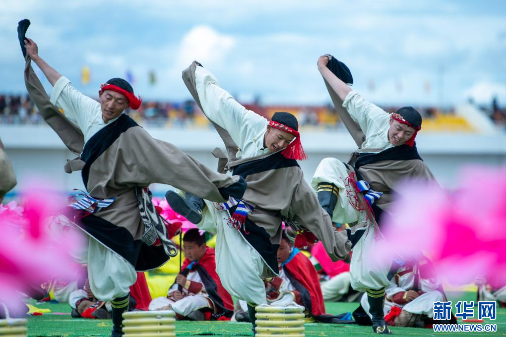 8月10日,演員在開幕式上表演那曲鍋莊。新華網 旦增努布 攝