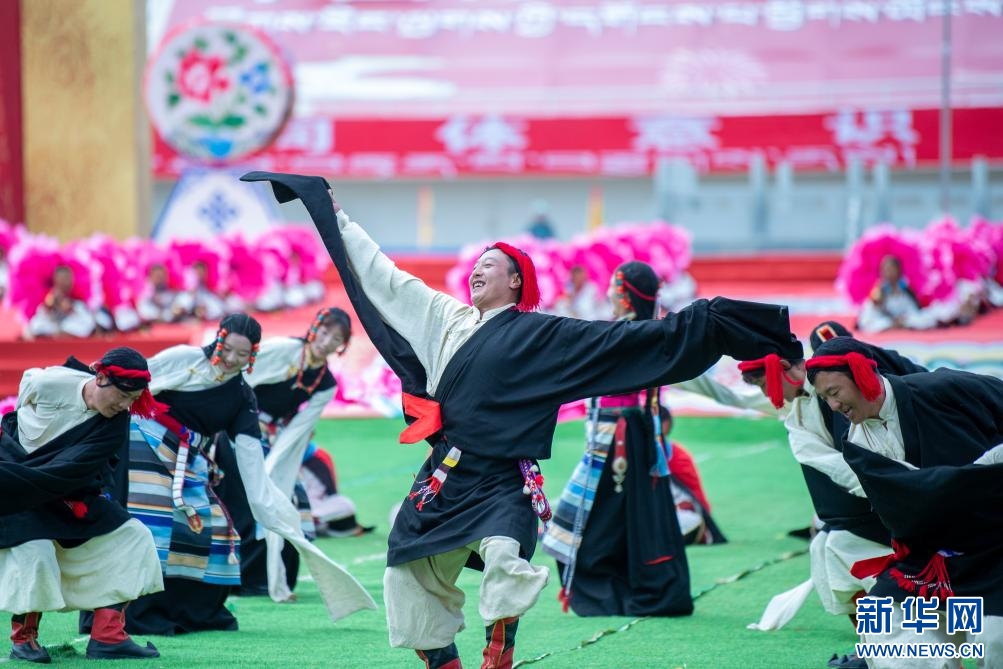 8月10日,演員在開幕式上表演舞蹈。新華網 旦增努布 攝