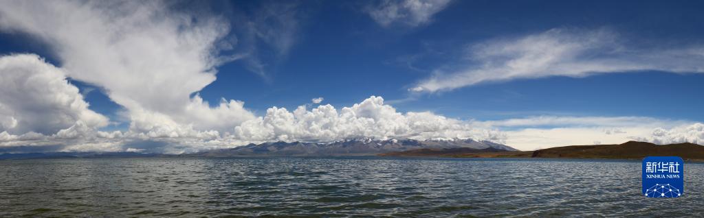 這是8月13日拍攝的瑪旁雍錯全景(拚接照片)。新華社記者 聶毅 攝