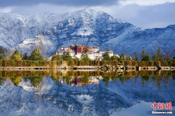 布達拉宮與(yu) 雪山倒映在拉薩南山湖麵。江飛波 攝