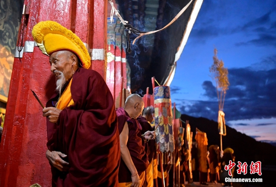 8月16日,拉薩哲蚌寺僧眾(zhong) 燃香為(wei) 迎請唐卡的隊伍開道。