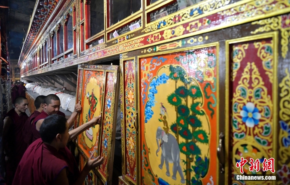 8月16日,拉薩哲蚌寺舉(ju) 行展佛活動。