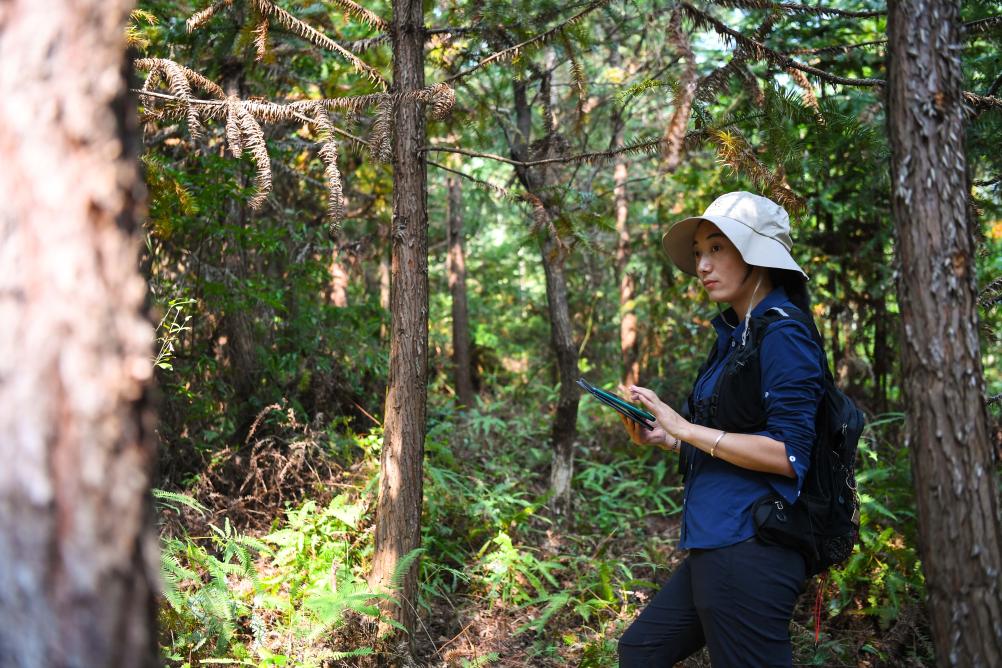 2022年9月22日,白拉曲珍在廣東(dong) 韶關(guan) 樂(le) 昌市張溪村生態監測樣地工作。新華社記者鄧華 攝