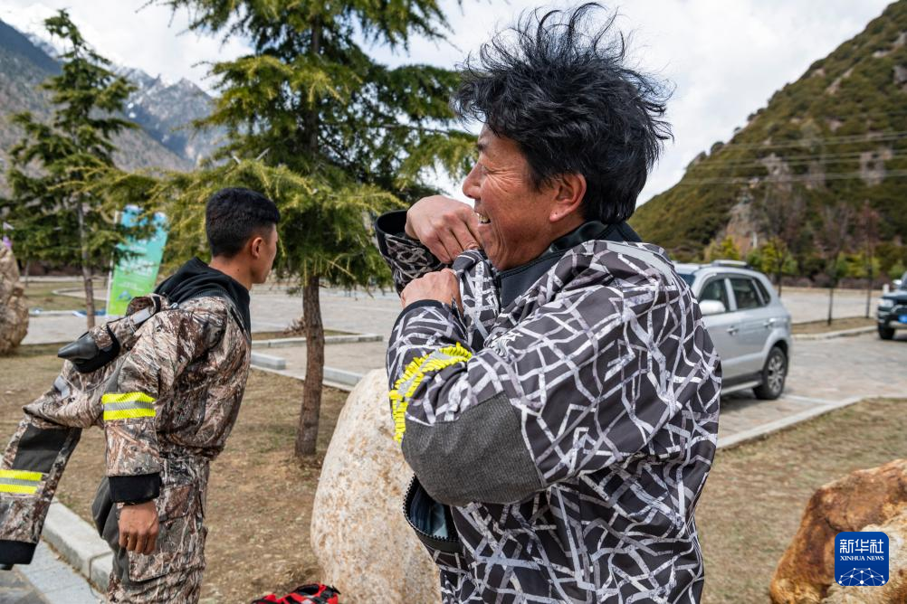 紮史品初(右)正在更換漂流用的連體(ti) 服(4月14日攝)。新華社記者 孫非 攝