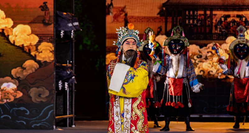 16日晚,在2023拉薩雪頓節開幕式文藝演出的舞台上,國家京劇院國家一級演員黃炳強穿著黃色蟒袍,邁著穩健的四方步緩緩上台,盡顯李世民威武之氣;另一邊,飾演鬆讚幹布的西藏自治區藏劇團團長班典旺久穿著金色藏戲服飾,步子大開大合,氣宇軒昂地上場……時隔多年,兩(liang) 位演員在台上重逢。