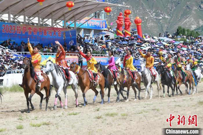 圖為(wei) 拉薩民眾(zhong) 暢享馬術表演。貢嘎來鬆 攝