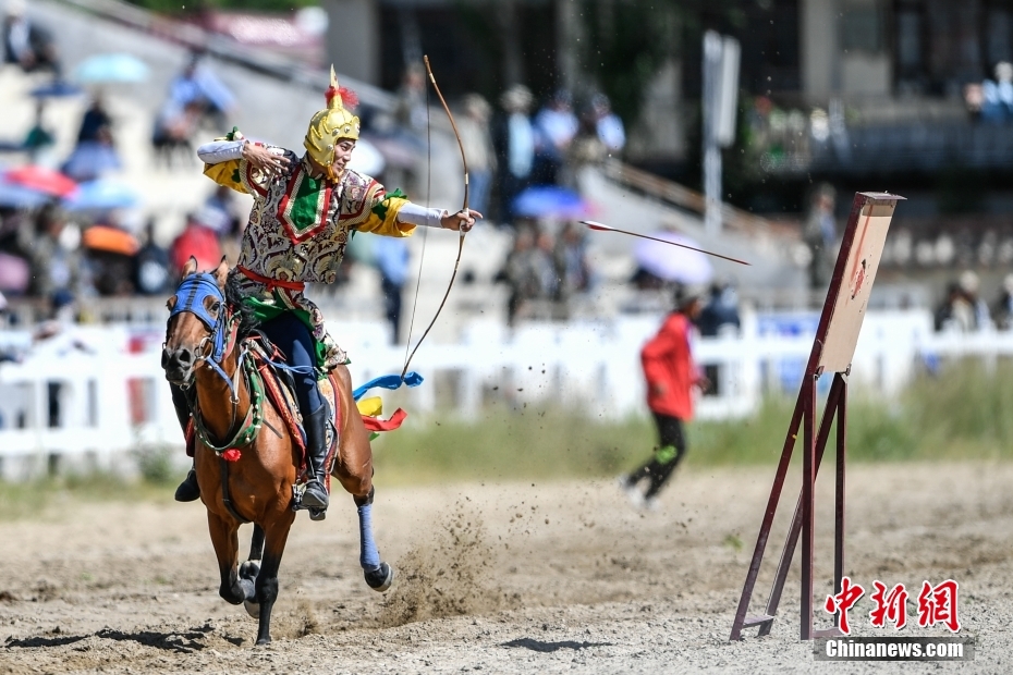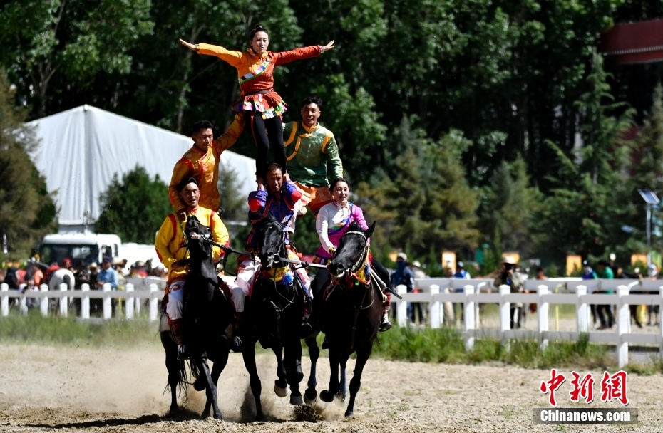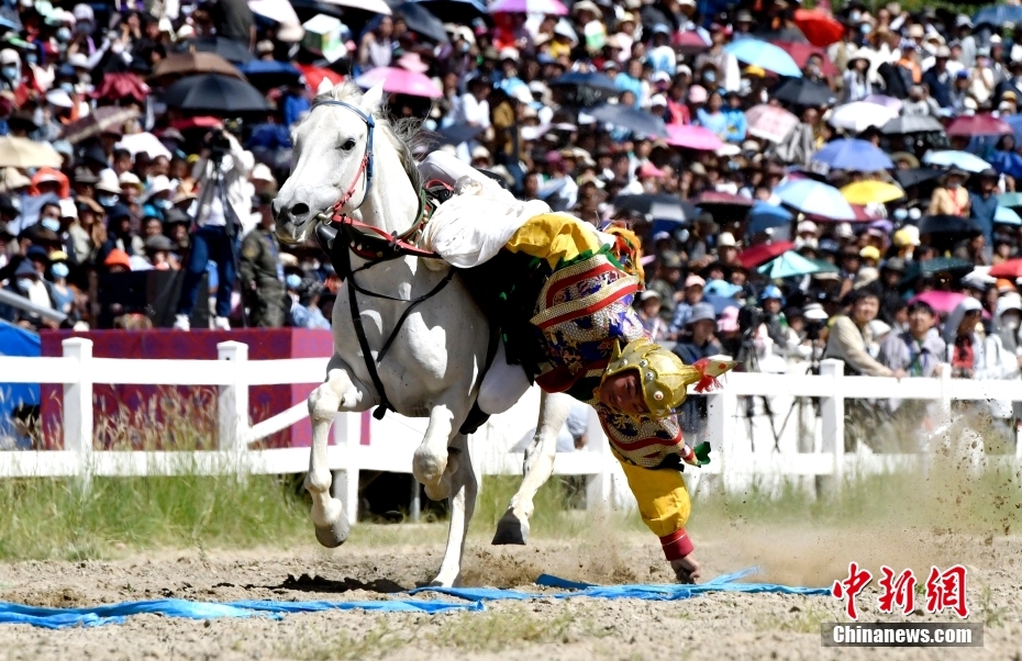 8月17日,騎手們(men) 進行馬術表演。當日,2023年拉薩雪頓節民族傳(chuan) 統馬術表演在西藏拉薩市北郊賽馬場舉(ju) 行。