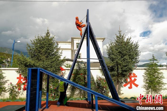 圖為(wei) 山地水泵架設。馮(feng) 怡凡 攝