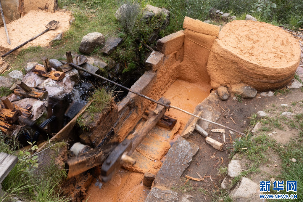 圖為(wei) 水磨不斷研磨柏木使其成漿(8月21日攝)。新華網發 李騰 攝