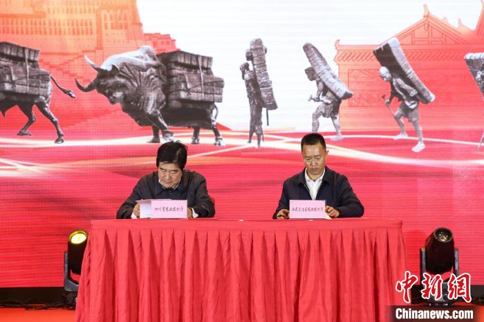 圖為(wei) 四川省農(nong) 業(ye) 農(nong) 村廳一級巡視員子克拉格(圖左)和西藏自治區農(nong) 業(ye) 農(nong) 村廳副廳長羅丹(圖右)簽訂深化農(nong) 業(ye) 合作框架協議現場。貢確 攝