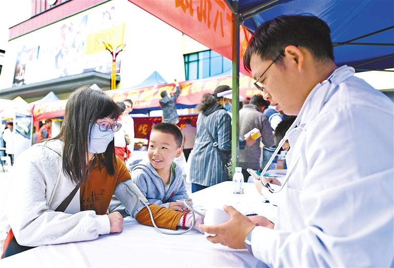 圖為(wei) 活動現場,醫生在為(wei) 市民測量血壓。 西藏日報記者 王敏 攝
