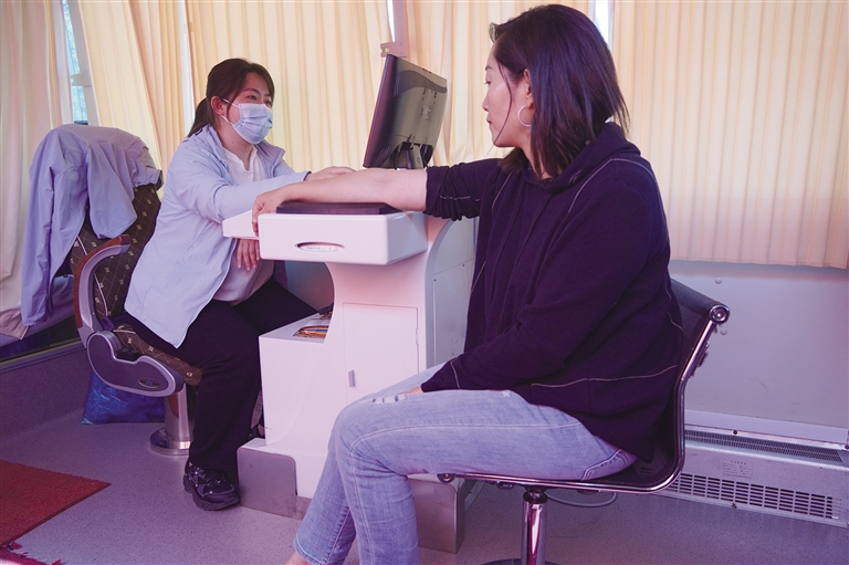 工作人員為(wei) 群眾(zhong) 做糖基化風險預測。