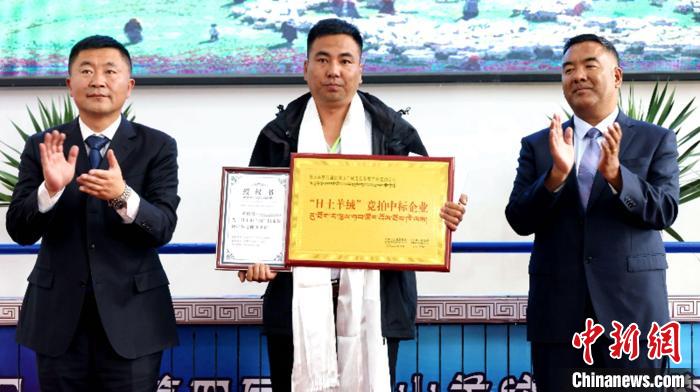圖為(wei) 為(wei) “日土羊絨”競拍中標企業(ye) 頒發授權書(shu) 。日土融媒體(ti) 中心供圖