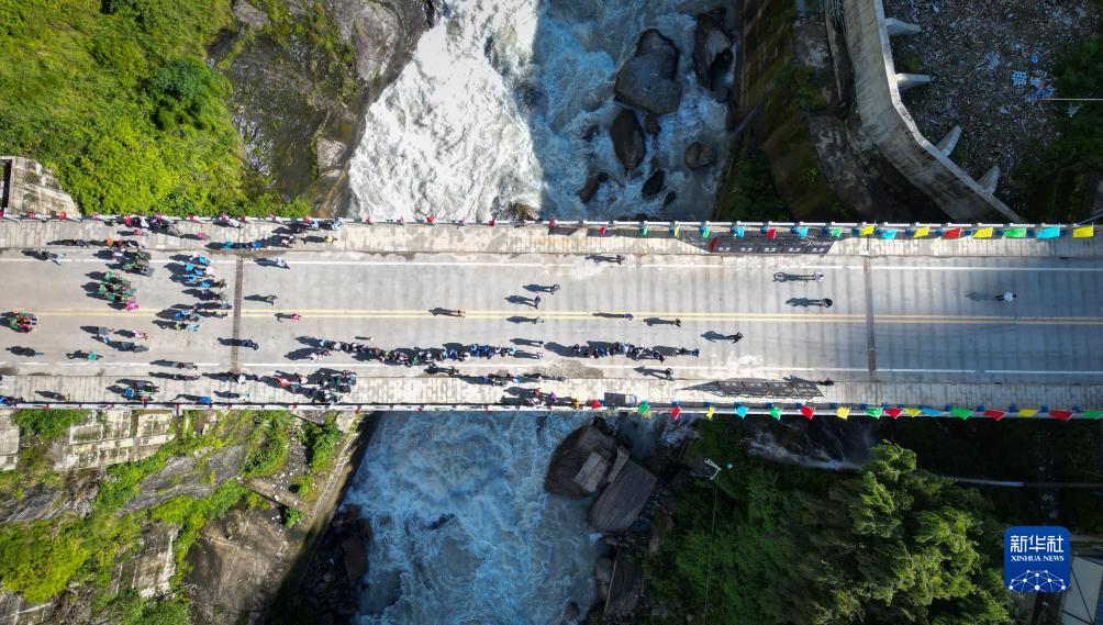 9月1日,往來中尼兩(liang) 國的人員跨過友誼橋(無人機照片)。新華社記者 聶毅 攝