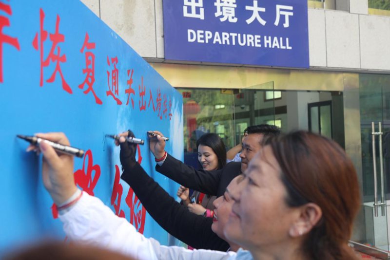 “心情很激動,現在可以從(cong) 樟木口岸通關(guan) 了,往來方便多了!”樟木鎮群眾(zhong) 索朗曲珍激動地說。同時,她在國門簽名牆上寫(xie) 下了“祝祖國繁榮昌盛”的祝福。