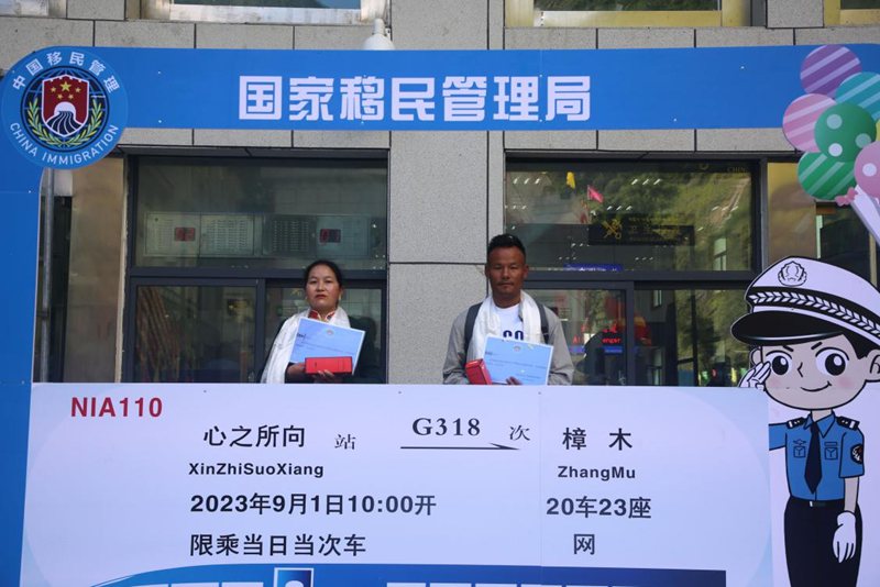 9月1日早上10:30左右,樟木口岸迎來第一位入境旅客牟時斌。早上8點,他從(cong) 尼泊爾巴爾比斯出發,準備從(cong) 樟木口岸通關(guan) 回國。在經過聶拉木邊檢站檢查員阮家海的檢查後,牟時斌欣喜地走出聯檢大廳,踏上了祖國的土地——這標誌著素有“喜馬拉雅南麓第一國門”之稱的樟木口岸,因2015年尼泊爾8.1級大地震關(guan) 閉8年之久後,正式恢複普通人員往來,邊民互市貿易。