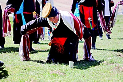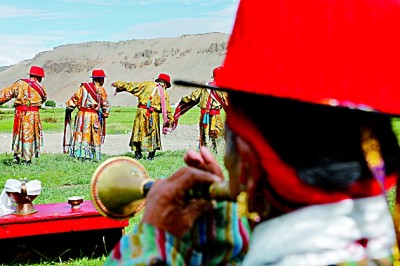 普蘭(lan) 縣赤德村村民正在表演“仲”舞。光明日報記者 李曾騤攝