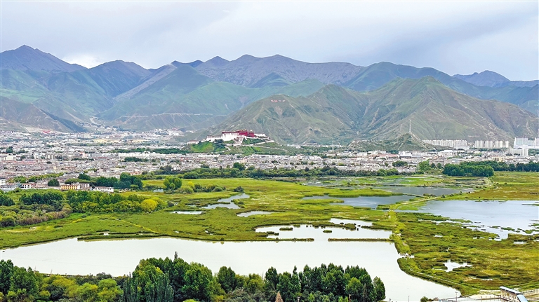 拉魯濕地有著“拉薩之肺”“天然氧吧”的美譽。站在觀鳥台上,林地、湖泊、水鳥、城市融為(wei) 一體(ti) ,美不勝收。