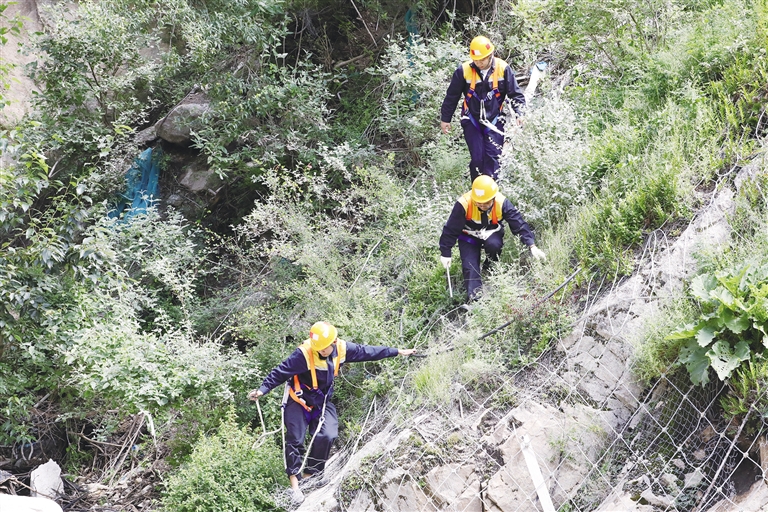 “剛下過雨,地麵濕滑,大家一定要抓牢踩實,防止滑倒。”走在最前麵的工長東(dong) 生瑞轉身大聲提示大家,他的聲音隨風在山穀間回蕩。在一段陡峭的山路旁,來自東(dong) 北的“00後”小夥(huo) 杜猛發現一塊大石頭下麵有空虛的跡象,他立即向東(dong) 生瑞匯報,並拿出自噴漆,在石頭周圍噴上記號和巡視日期。