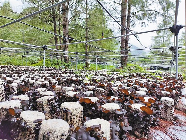 圖為(wei) 格當鄉(xiang) 布龍村林下種植場種植的黑木耳。郎玲 王敏 攝