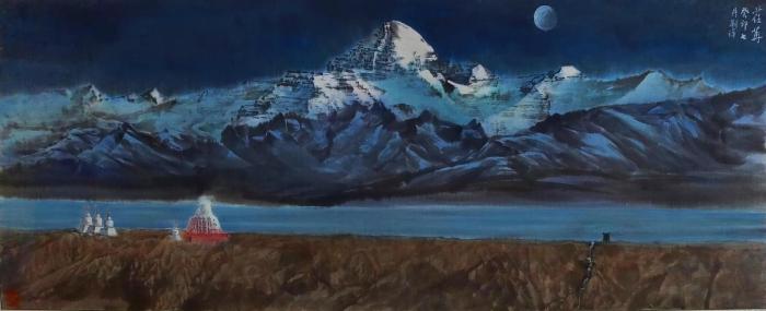 圖為(wei) 劉洋國畫作品描繪的西藏岡(gang) 仁波齊。 劉洋 供圖