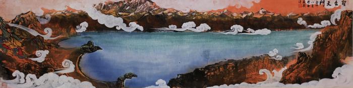 圖為(wei) 劉洋國畫作品描繪的納木錯聖象天門景觀。 劉洋 供圖