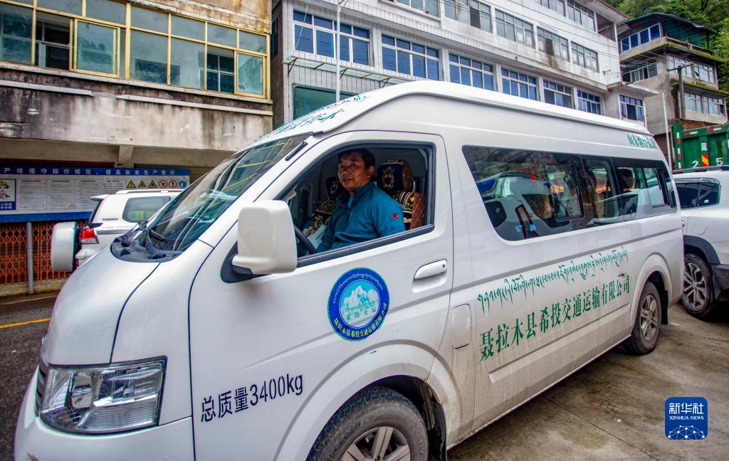 駕駛員旦增尼瑪運營的旅遊車負責接送中國遊客往返樟木口岸與(yu) 聶拉木縣城(9月9日攝)。樟木口岸恢複客運功能後,他每天都要在這條線路上跑4、5個(ge) 來回。新華社記者 薑帆 攝