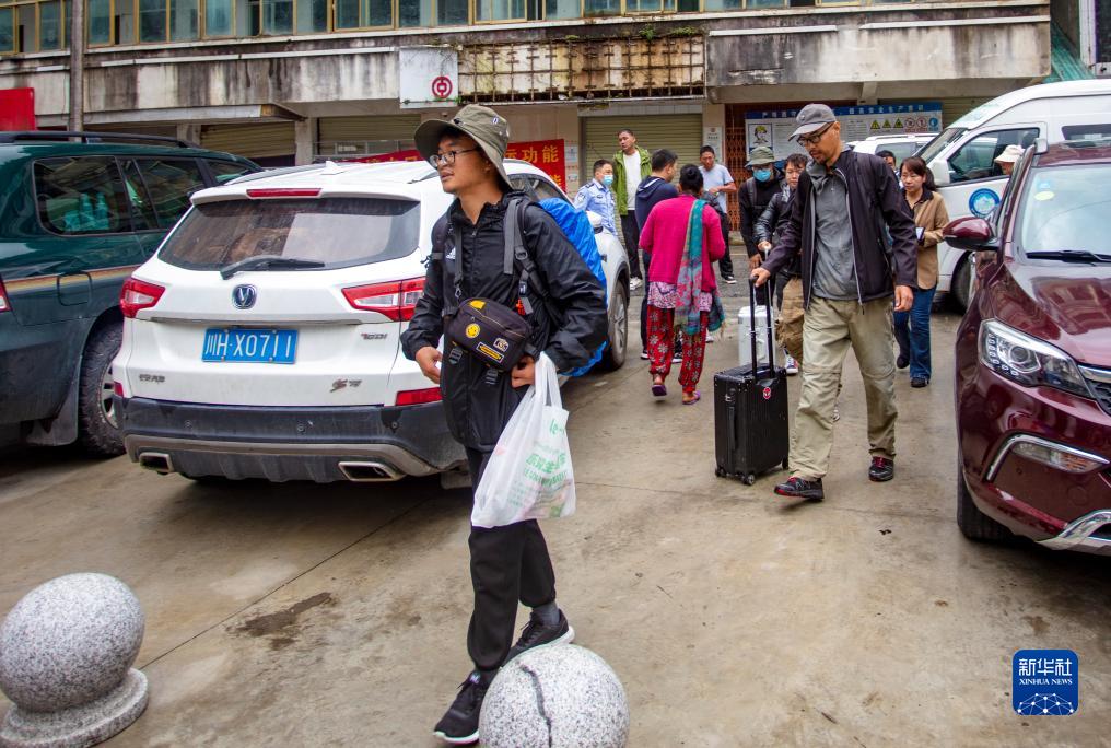 幾名遊客準備從(cong) 樟木口岸出境到尼泊爾旅遊(9月9日攝)。新華社記者 薑帆 攝