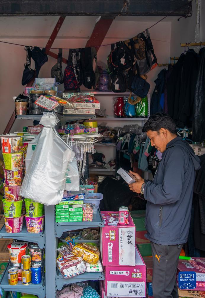 尼泊爾邊民在樟木口岸互市貿易市場選購商品(9月9日攝)。新華社記者 薑帆 攝