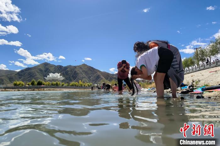 9月10日,民眾(zhong) 在拉薩河畔梳洗。中新社記者 江飛波 攝