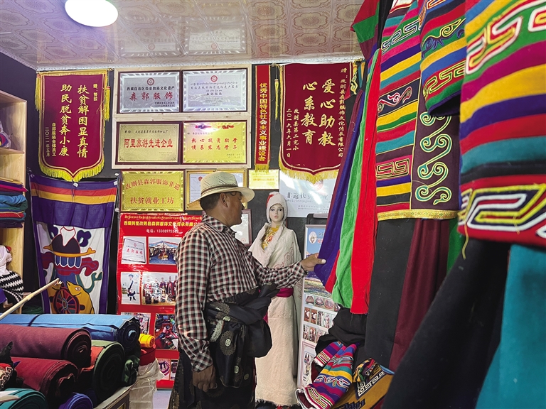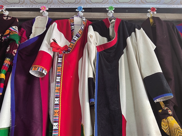 努拉今年66歲,自他曾祖父起,家人就開始從(cong) 事“森郭服飾”製作,並將這項非遺技藝一代一代傳(chuan) 承了下來。努拉告訴記者:“從(cong) 父親(qin) 那一輩開始,由於(yu) 外來服飾的流入,藏民族傳(chuan) 統服飾的發展就不如從(cong) 前了,這對‘森郭服飾’的傳(chuan) 承也有很大的影響。”