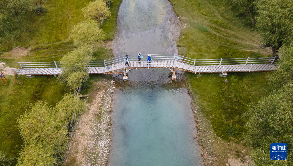 雅尼國家濕地公園管護員在巡護途中(無人機照片,9月8日攝)。新華社發(丁增尼達 攝)