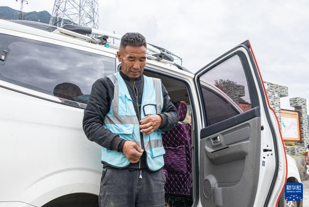 雅尼國家濕地公園管護員普布多傑在穿工作馬甲,準備開始巡護工作(9月8日攝)。新華社發(丁增尼達 攝)