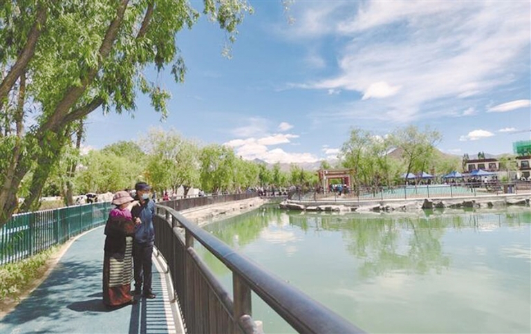 此外,為(wei) 進一步給市民提供運動、健身、散步的場所,展示高原城市魅力,2017年以來,日喀則全市共計投入6.33億(yi) 元,對年楚河沿線貢覺林卡、明珠湖、人民公園、黑龍江路1-5號公園,市區各出城口公園廣場進行重建,公園注重水陸生態保護,營造了良好的自然生態群落。