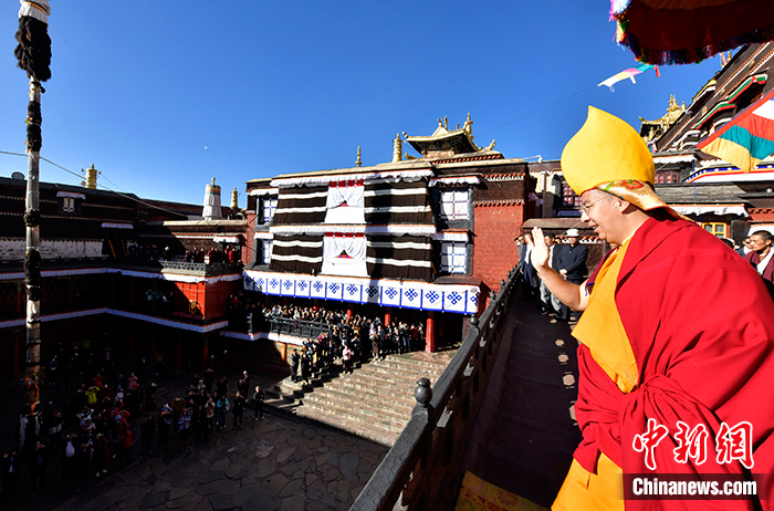 9月13日,班禪在紮什倫(lun) 布寺向等候的信眾(zhong) 與(yu) 遊客揮手致意。中新社記者 李林 攝