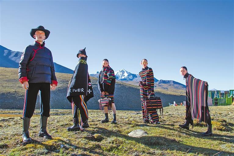 本次時尚秀展出服飾均由江孜縣精通氆氌編織的婦女手工製作,並融入了上海援藏企業(ye) 的現代時尚設計。